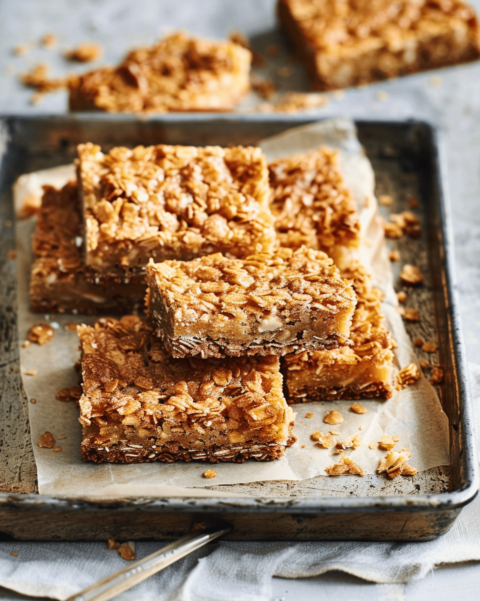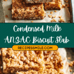 I love how this recipe combines simple ingredients like oats, coconut, and brown sugar with the sweet richness of condensed milk and golden syrup. The result is a chewy, slightly crunchy slab that’s perfect for any occasion. Whether I’m looking for an afternoon snack, a treat to share with friends, or something to take to a picnic, this recipe never fails to impress. The addition of sweetened condensed milk takes the classic ANZAC biscuit to a new level of indulgence while still keeping that signature flavor.