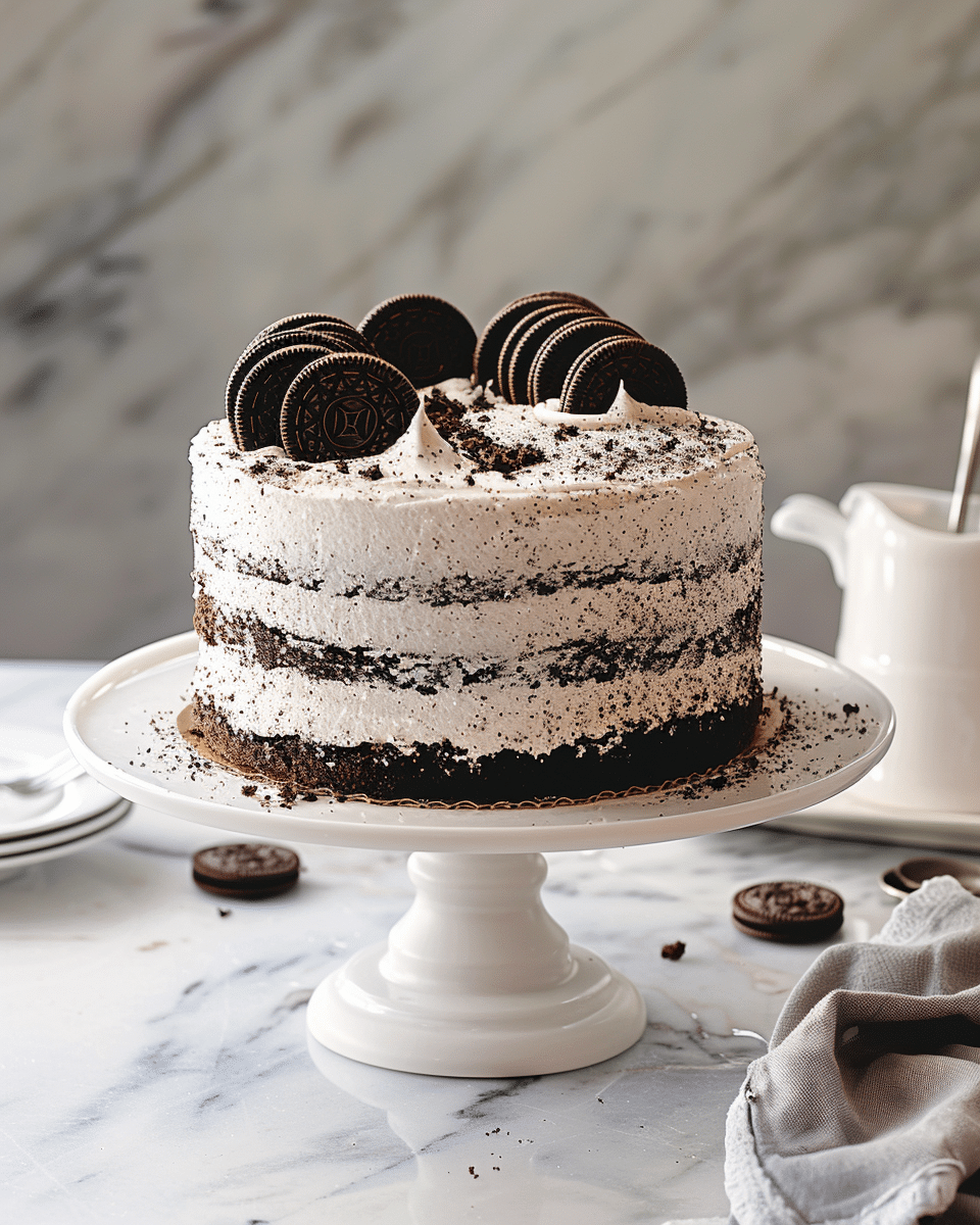 While Oreos are the classic choice for this cake, you can substitute them with other chocolate sandwich cookies or even vanilla-flavored cookies for a different twist. Just make sure the cookies are finely crushed so they blend seamlessly into the frosting.