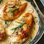 Creamy Dijon Rosemary Chicken a juicy chicken breasts are simmered to perfection in a rich and velvety Dijon mustard and rosemary sauce in this comforting and elegant dish. It’s a simple yet flavorful recipe that turns everyday ingredients into something worthy of a dinner party—or just a cozy night in.