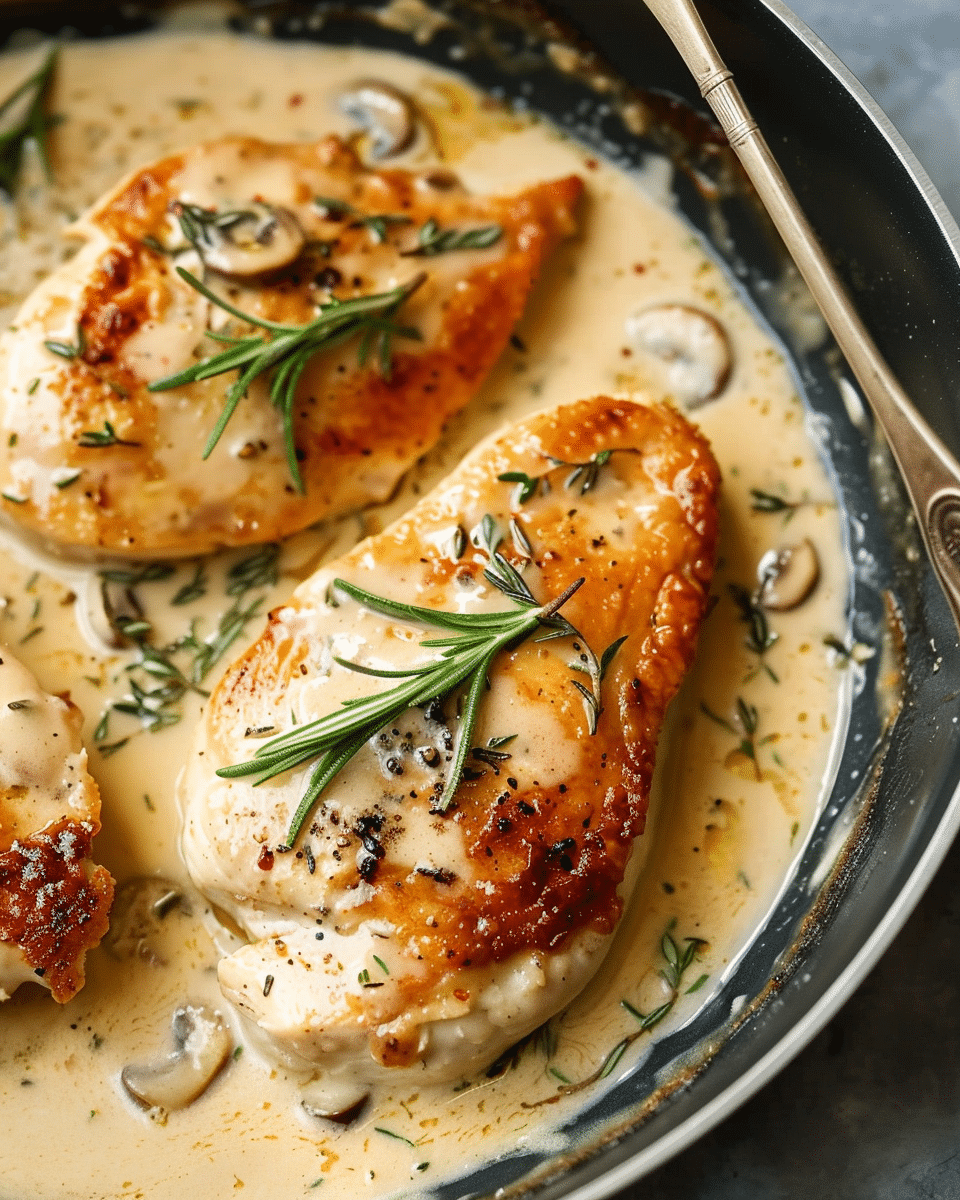 Juicy chicken breasts are simmered in a creamy Dijon mustard and rosemary sauce for a comforting, elegant dish perfect for weeknights or entertaining.
