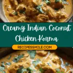 A rich and creamy Indian Coconut Chicken Korma made with tender chicken, coconut milk, yogurt, and aromatic spices. Mild, flavorful, and perfect for both weeknight meals and entertaining guests.