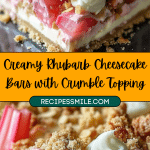 These creamy rhubarb cheesecake bars with crumble topping are a perfect blend of sweet and tart, making them a delightful treat to enjoy during the warmer months. Whether you’re making them for a special occasion or simply because you’re craving something delicious, they’re sure to be a hit. With their easy preparation and impressive flavor, they’ll quickly become one of your favorite desserts too.