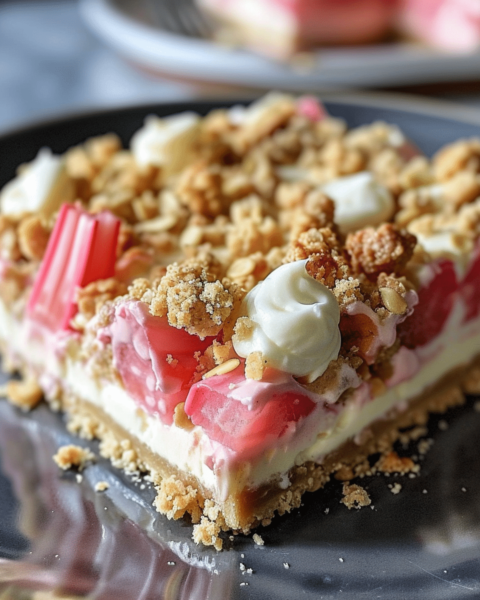 Creamy Rhubarb Cheesecake Bars with Crumble Topping