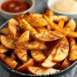 A healthy twist on a nostalgic fairground treat, these crispy air fryer apple fries are my go-to when I want something sweet, satisfying, and easy to make. They’re tender on the inside, coated with a cinnamon-sugar crunch on the outside, and cooked to perfection without any deep frying. Whether I serve them as a quick snack or a fun dessert, they always disappear fast.