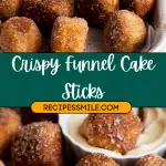 Golden and Crispy Funnel Cake Sticks are a fun twist on the classic fairground treat. These bite-sized delights are perfect for dipping, snacking, or simply indulging in the sweet, nostalgic flavor of powdered sugar-dusted goodness.