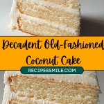 Decadent Old-Fashioned Coconut Cake Recipe – a classic dessert with moist, fluffy layers, rich coconut flavor, and a snowy coconut flake topping. Perfect for holidays, birthdays, or any special occasion, this show-stopping cake delivers nostalgia and indulgence in every bite.
