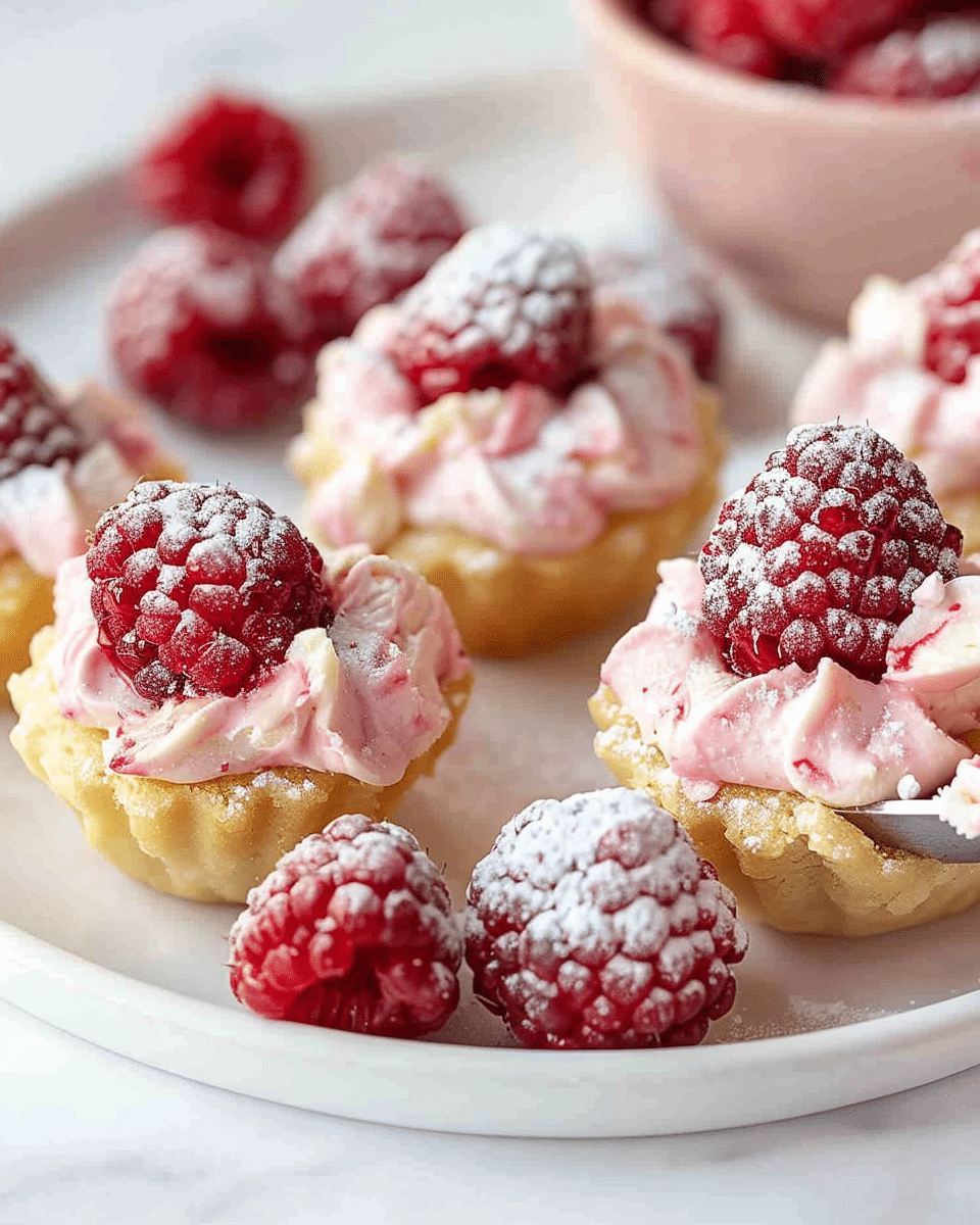 Bite-sized treats combining tangy cream cheese with fresh raspberries wrapped in flaky puff pastry, perfect as a sweet snack or elegant appetizer.