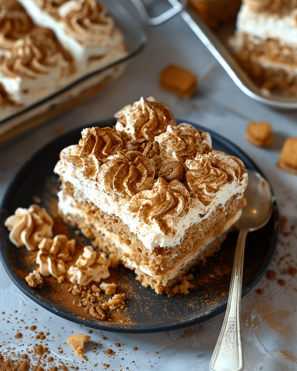 Before serving, dust the top with cocoa powder or sprinkle with crushed Biscoff cookies for an added crunch and visual appeal.