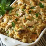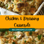 This Easy Chicken & Dressing Casserole is a comforting Southern-style dish made with tender shredded chicken, creamy soup, buttery cornbread stuffing, and savory seasonings—perfect for cozy dinners or holiday leftovers.