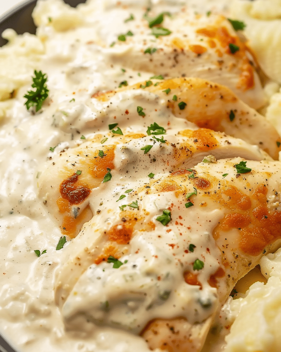Sides: This creamy chicken dish pairs wonderfully with a variety of sides. Serve it with steamed vegetables (like green beans, broccoli, or asparagus), mashed potatoes, or pasta (such as fettuccine, spaghetti, or penne) to complete the meal.