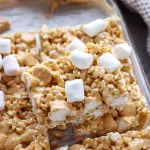 These Fluffernutter Rice Krispie Treats are a crowd-pleasing twist on the classic version. The rich peanut butter pairs perfectly with the marshmallows, giving the treats a satisfying creaminess and depth of flavor. The crispy rice cereal adds the crunch you love, and the option to drizzle extra peanut butter on top gives them a decadent finish.