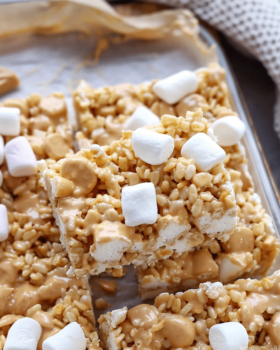 For extra flavor and a little extra flair, sprinkle the mini marshmallows on top of the treats. Press them lightly into the surface. If you love peanut butter, drizzle some melted peanut butter or peanut butter drizzle over the top for that extra creamy finish.