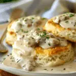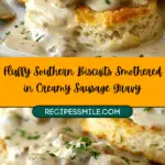 Fluffy Southern Biscuits Smothered in Creamy Sausage Gravy a true Southern staple, this dish brings warm, flaky buttermilk biscuits together with a peppery, creamy sausage gravy for the kind of breakfast that sticks with me—in the best way. It’s hearty, satisfying, and tastes like something straight from Grandma’s kitchen. Whether I’m making this for a cozy weekend brunch or a quick comfort meal, it never fails to impress.