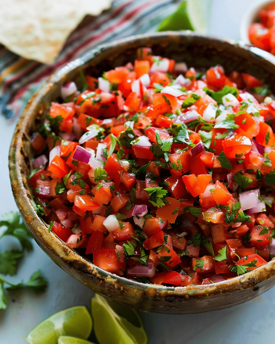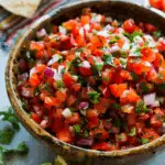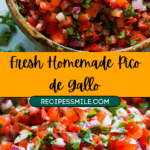 This fresh homemade pico de gallo is a vibrant, uncooked salsa made with tomatoes, red onion, jalapeño, cilantro, lime juice, and salt. It’s quick to prepare, healthy, and perfect for snacking or topping your favorite Mexican dishes.
