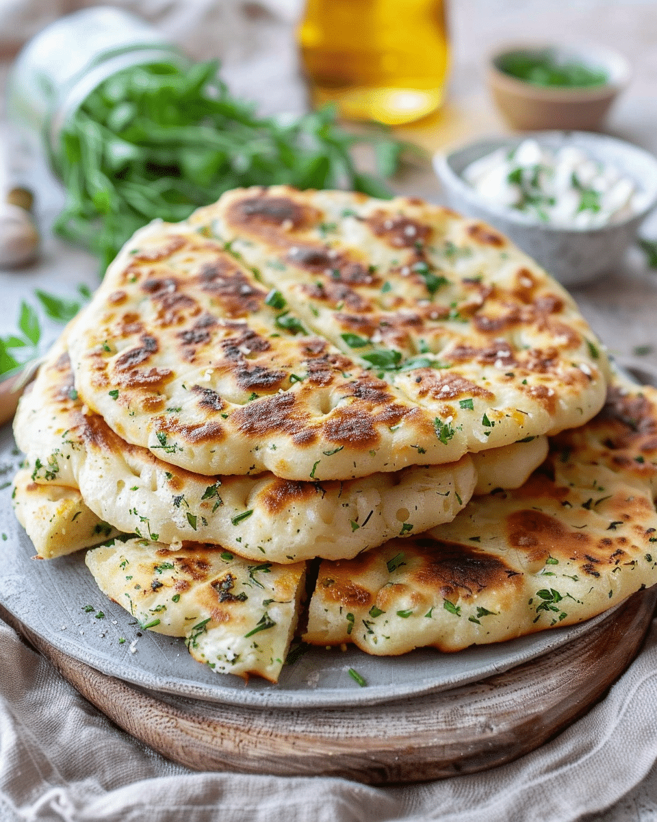 Indulge in the irresistible taste of Garlic and Butter Flatbread! Soft, fluffy, and bursting with flavor, these flatbreads are perfect as a side dish or enjoyed on their own. Easy to make, they pair well with any meal, making them the ultimate comfort food for garlic lovers!