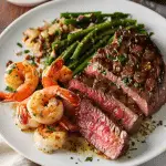 This garlic butter ribeye steak and shrimp recipe is a delightful surf-and-turf combination that brings the flavors of a high-end steakhouse to your table. With tender steak, juicy shrimp, and a luscious garlic butter sauce, it’s a meal that feels indulgent yet is simple enough to make anytime. Enjoy it with your favorite sides for a truly satisfying dining experience.