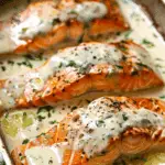 Juicy salmon fillets seared to perfection and smothered in a rich garlic-butter cream sauce with lemon and parsley. This elegant yet simple dish is ready in under 30 minutes — perfect for weeknights or special occasions.