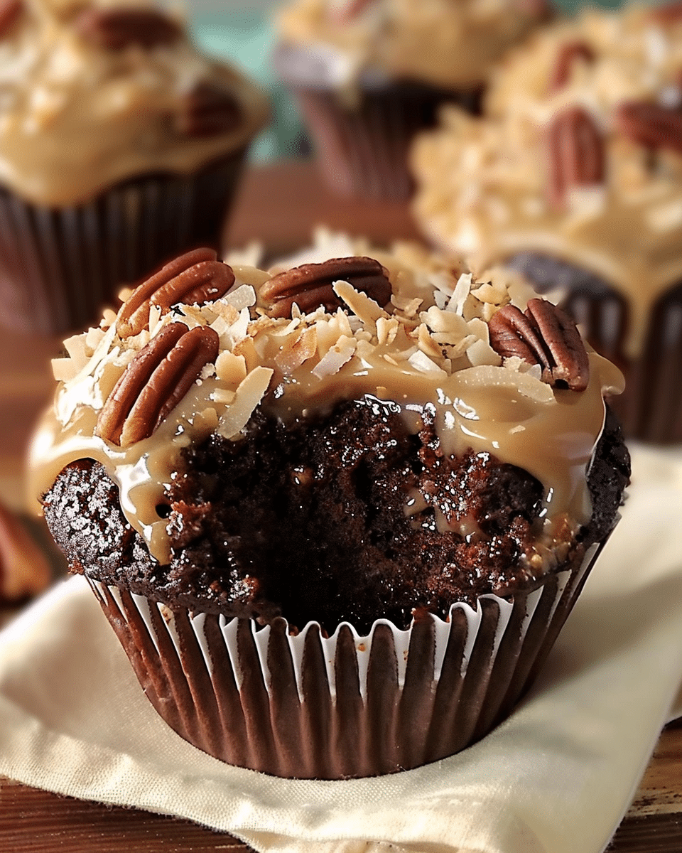 Indulge in the ultimate dessert with these German Chocolate Cupcakes! Featuring a rich, moist chocolate base, topped with creamy caramel frosting, sweet shredded coconut, and crunchy pecans, these cupcakes are the perfect treat for celebrations, potlucks, or a sweet indulgence. Easy to make and bursting with flavor, they’re sure to be a hit!