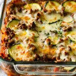 Ground Beef Zucchini Casserole a hearty and healthy casserole made with ground beef, zucchini, and a blend of seasonings, topped with melted cheese for a comforting meal.