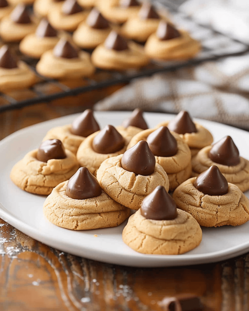 Add Chocolate Kisses: While the cookies are still warm, gently press a chocolate kiss into the center of each cookie.