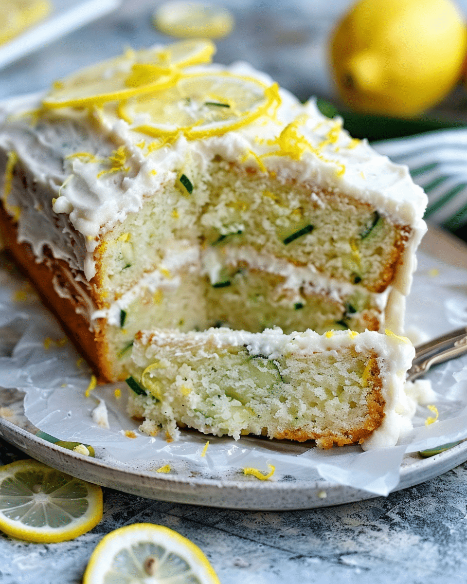 A bright, moist, and tender Lemon Zucchini Cake made with fresh zucchini and vibrant lemon flavor, finished with a tangy lemon glaze. Perfect for summer or any time you want a lighter dessert.