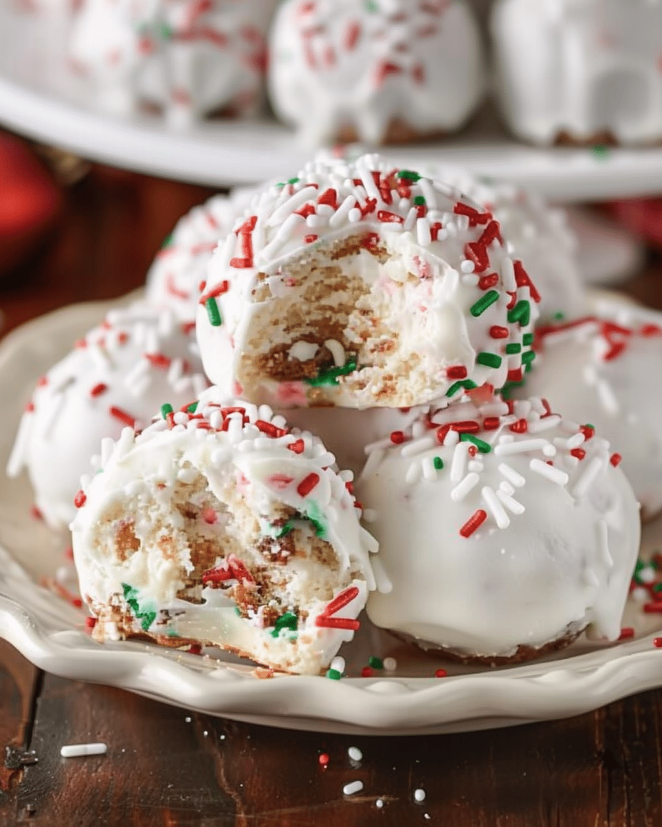 If desired, sprinkle the cake balls with red and green sprinkles to give them a festive look.