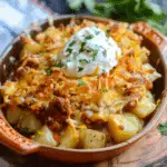 Loaded Cheesy Taco Potatoes are a comforting Tex-Mex inspired dish made with crispy roasted potatoes, savory taco-seasoned ground beef (or plant-based meat), and melted cheddar cheese, topped with fresh herbs and optional garnishes. Perfect for busy weeknights or casual gatherings.