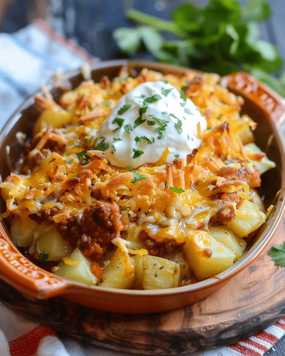 I love how this recipe takes simple ingredients and turns them into something hearty and crave-worthy. The potatoes roast up crispy and golden, acting as the perfect base for the rich, spiced taco mixture. Whether I’m cooking for my family or prepping a dish to share with friends during game night, this recipe never disappoints. Plus, it’s easy to adapt with plant-based or dairy-free options, making it super flexible for different diets.