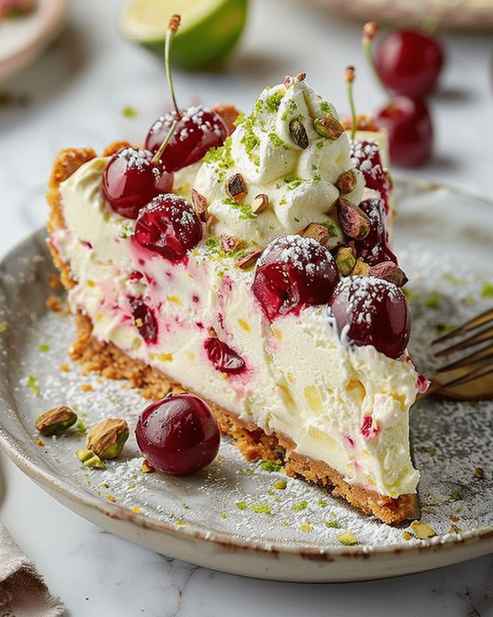 Serve: Before serving, top with a dollop of whipped cream, whole cherries, and additional chopped pistachios for a beautiful presentation.