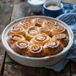 Once cooled, I store the cinnamon rolls in an airtight container at room temperature for up to 2 days. To keep them longer, I freeze them individually and reheat in the microwave or oven when needed. For reheating, I warm them in a 160°C (320°F) oven for 5–10 minutes or microwave for 20–30 seconds until soft and warm. I always wait to glaze until just before serving if freezing in advance.