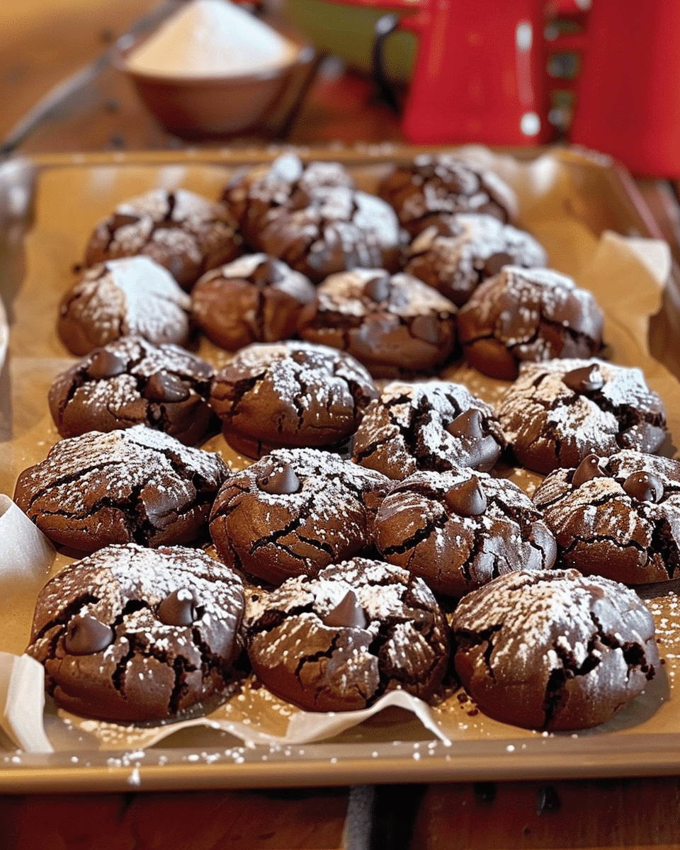 Dust the cooled cookies with powdered sugar if desired. Serve them with a glass of milk for the ultimate chocolatey indulgence.