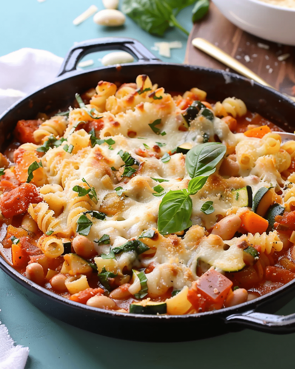 I love this recipe because it’s an absolute crowd-pleaser! The blend of fresh vegetables, creamy white beans, and tender pasta makes it a flavorful and filling dish. The cheesy topping adds a rich, gooey finish that’s hard to resist. Not only is it delicious, but it’s also incredibly easy to make. You simply sauté the veggies, simmer everything together, add pasta, top with cheese, and bake it to perfection. It’s the perfect weeknight dinner that can feed a family, and it’s comforting without being too heavy.