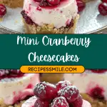 Creamy individual cheesecakes with a buttery graham cracker crust and a sweet-tart cranberry topping, these Mini Cranberry Cheesecakes are a delightful dessert perfect for holiday gatherings or anytime you want a festive treat.