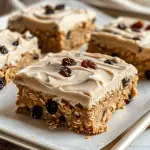 Soft and chewy oatmeal raisin cookie bars topped with creamy cinnamon-maple frosting are the perfect dessert for any occasion. Packed with cozy flavors, these easy-to-make bars are a hit for holiday gatherings or casual snacking.