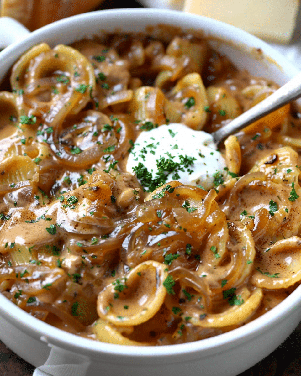 Garnish with freshly chopped parsley if desired, and serve immediately. Pair with a side of crusty bread to mop up the delicious sauce for the ultimate French onion-inspired meal.