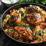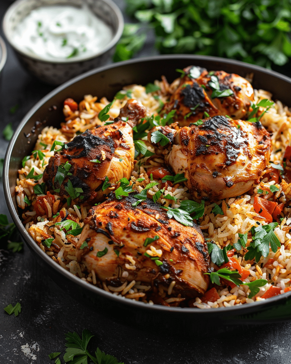 A deeply flavorful, Middle Eastern-inspired one-pot dish featuring juicy chicken thighs, fluffy spiced rice, and sautéed vegetables. Perfect for a quick, hearty, and gluten-free dinner with bold shawarma flavor.