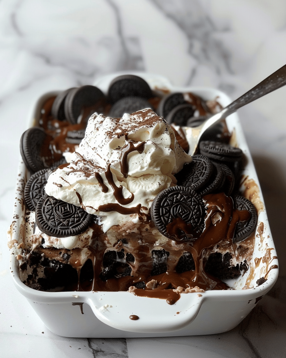 Indulge in a rich and gooey Oreo Dump Cake, an easy dessert made with layers of Oreos, sweetened condensed milk, whipped topping, and chocolate cake mix, topped with buttery perfection. Perfect for gatherings, weeknight treats, or any special occasion!