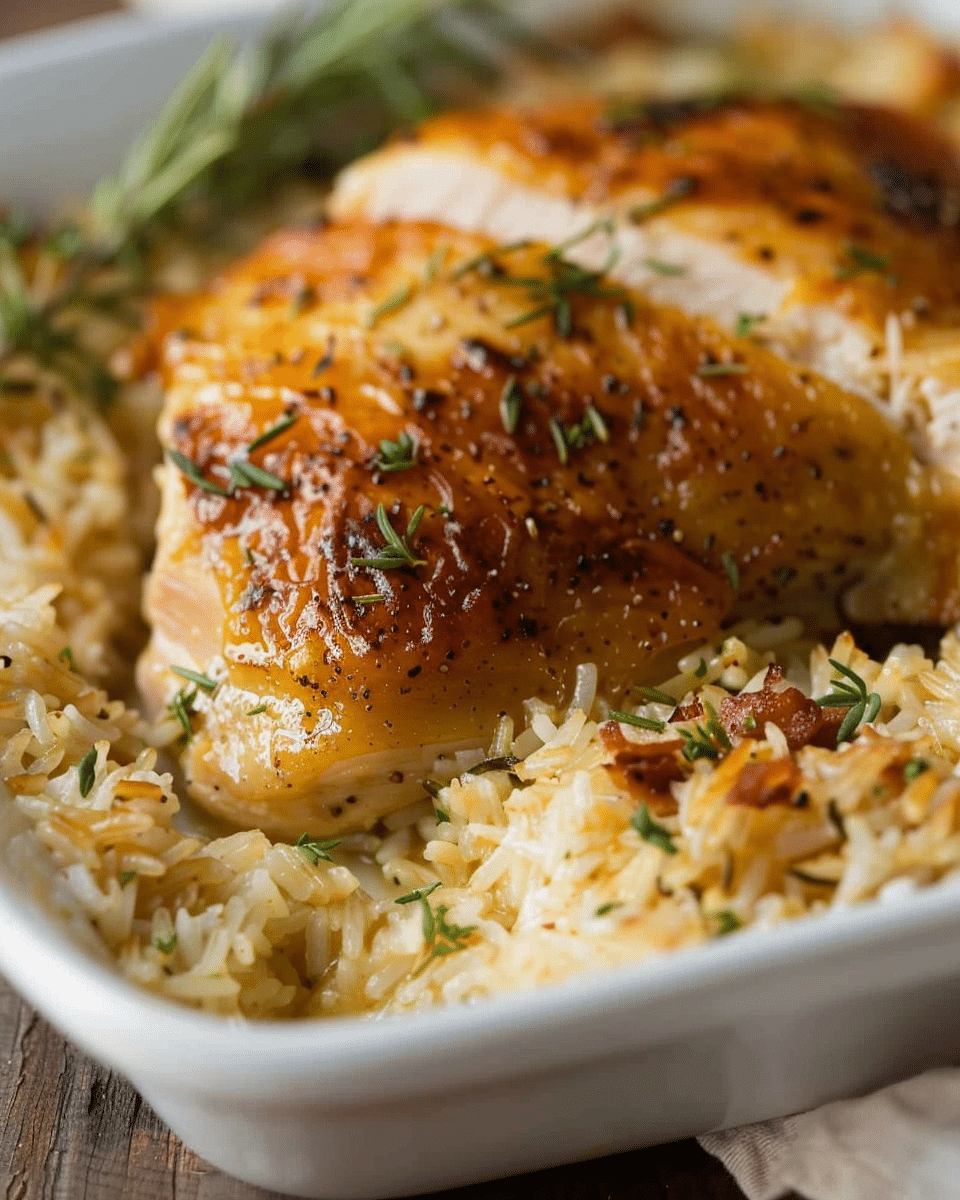 This Oven-Baked Chicken and Rice recipe is not only simple but also a delightful blend of flavors and textures. The chicken thighs come out tender and juicy, while the rice soaks up all the savory goodness from the chicken broth and seasonings. Whether you’re feeding a family or prepping for meal prep, this dish is a winner in both taste and convenience.
