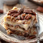 Pecan Pie Lasagna is a decadent layered dessert that combines the rich flavors of pecan pie with the light, creamy texture of no-bake cheesecake. Perfect for holidays or gatherings, this make-ahead treat will impress with its beautiful presentation and deliciously indulgent taste.