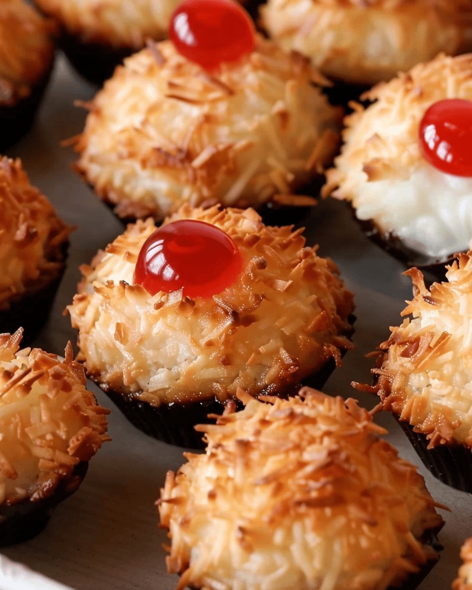 If you’re looking for the perfect bite of coconut sweetness, these classic coconut macaroons are just what you need! Crisp on the outside and chewy on the inside, they’re a delightful combination of textures and flavors, finished off with a tempting chocolate dip and a cherry on top. Whether for holiday treats, special occasions, or a simple dessert craving, this easy macaroon recipe is sure to please.
