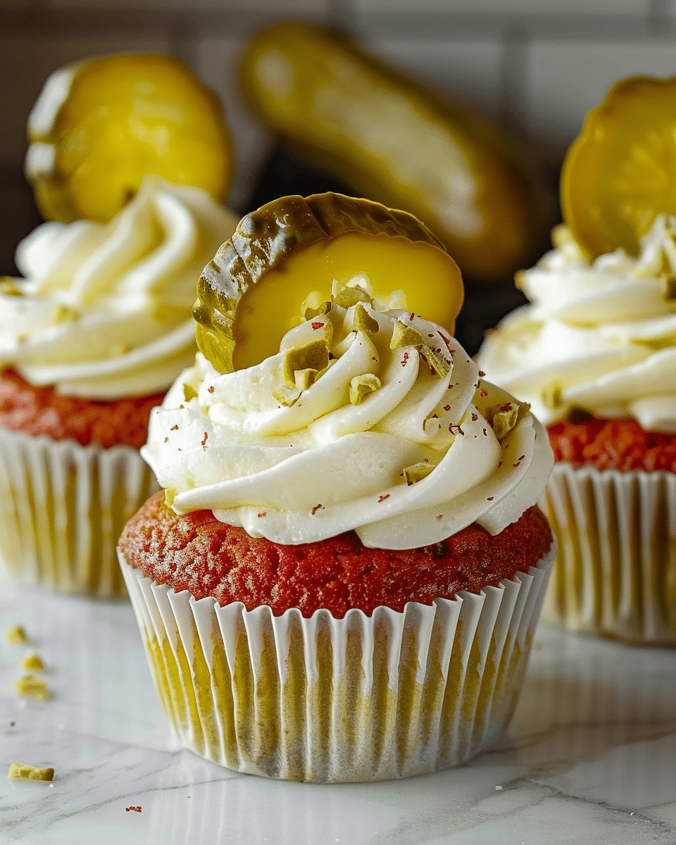 Presentation: For an appealing presentation, consider using colorful cupcake liners that contrast with the frosting. Garnish each cupcake with a slice of pickle or a sprinkle of crushed pickles for added texture and visual appeal.