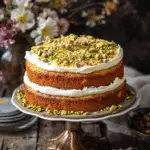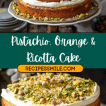 This Pistachio, Orange & Ricotta Cake is a vibrant, moist citrus dessert that balances zesty orange, creamy ricotta, and the rich nuttiness of pistachios. Topped with a silky pistachio-cream cheese frosting and a sprinkle of crushed pistachios, it’s the kind of cake I like to bake when I want something elegant yet comforting — ideal for weekends, celebrations, or even just a quiet afternoon with tea.