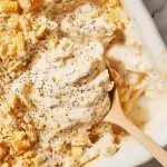 Creamy poppy seed chicken casserole combines tender chicken with a rich, buttery sauce and a crunchy Ritz cracker topping. This comforting dish is quick, easy, and perfect for weeknights or family gatherings.