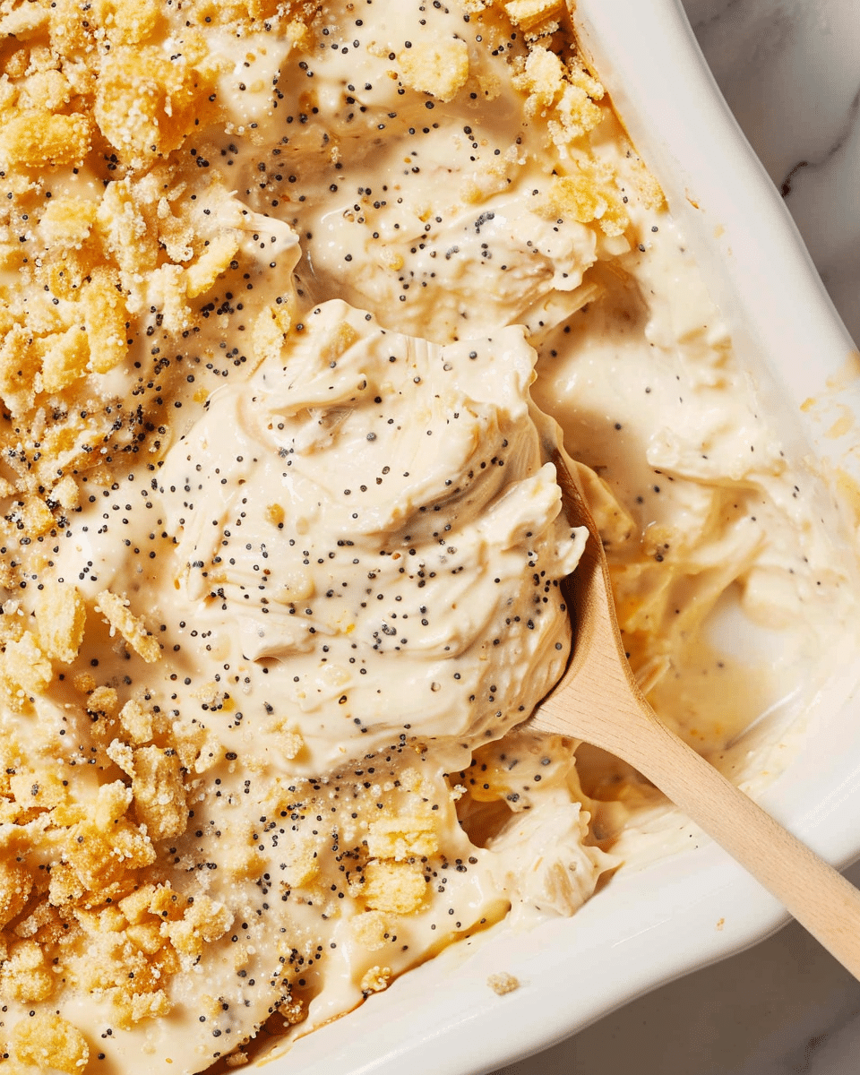 This Poppy Seed Chicken Casserole is a creamy and comforting casserole made with tender chicken, a buttery sauce, and topped with crunchy poppy seeds for a delightful texture contrast. Perfect for busy weeknights or a family dinner, this dish is easy to prepare and guaranteed to please everyone at the table.