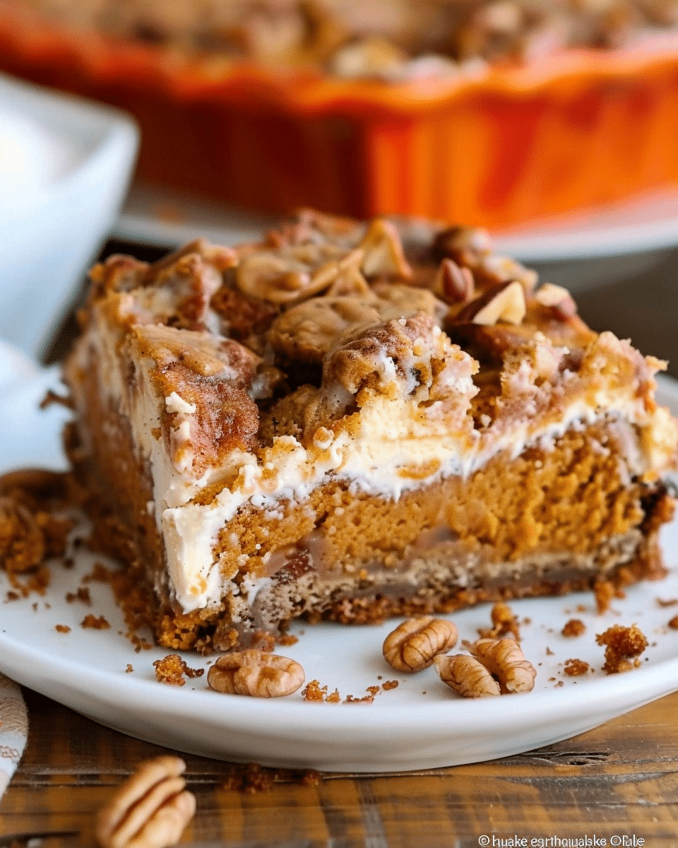 This Pumpkin Earthquake Cake is a moist and indulgent dessert that brings the flavors of fall to your table. With a spiced pumpkin cake base and a creamy cheesecake swirl that creates the signature “earthquake” effect, it’s a show-stopping treat for any autumn gathering. Whether served warm or at room temperature, it’s bound to impress with its rich texture and inviting aroma.