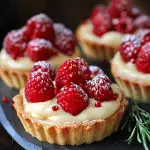 Indulge in the perfect blend of tangy raspberries and creamy white chocolate with these exquisite Raspberry & White Chocolate Tartlets. This recipe combines a buttery tartlet crust, a luscious layer of raspberry jam, and a velvety white chocolate ganache filling, topped with chopped pistachios and fresh raspberries for a delightful finish. Perfect for special occasions or everyday indulgence, these tartlets are sure to impress.