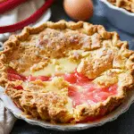 This classic Rhubarb Custard Pie recipe is a nostalgic spring dessert made with fresh rhubarb, creamy vanilla custard, and a flaky pastry crust. A sweet-tart pie with hints of orange zest and nutmeg, perfect for celebrating rhubarb season. Serve it at gatherings, family dinners, or any occasion where comfort food is welcome. Keywords: rhubarb custard pie, spring dessert, old-fashioned rhubarb pie, easy rhubarb recipe.