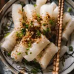 Silky, smooth, and delicate, Rice Noodle Rolls—better known as Cheung Fun—are one of my favorite dim sum delights to recreate at home. These Cantonese-style steamed rice noodle rolls are thin, tender sheets made from a rice flour-based batter, gently rolled and served with a light soy sauce. Whether I fill them with shrimp, BBQ pork, or keep them plain, they always bring authentic dim sum vibes to my kitchen.