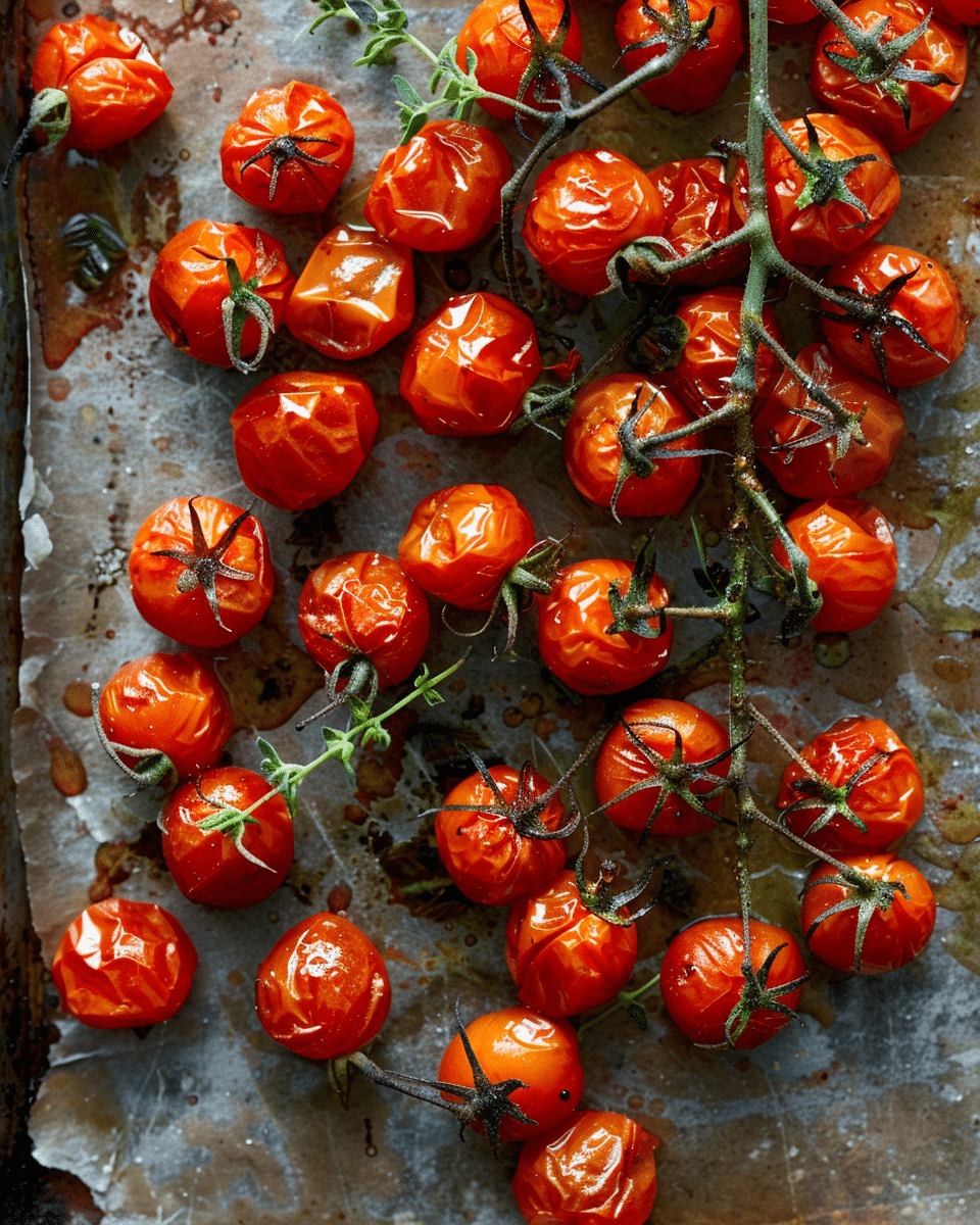 Sweet, juicy cherry tomatoes roasted with olive oil, garlic, and herbs. A simple, flavorful, and versatile dish perfect as a side, topping, or ingredient for pasta, toast, or salads.
