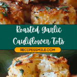 Crispy on the outside and tender on the inside, these roasted garlic cauliflower tots offer a flavorful and healthier alternative to traditional tater tots, combining savory roasted garlic and cheesy goodness for a perfect snack or side.